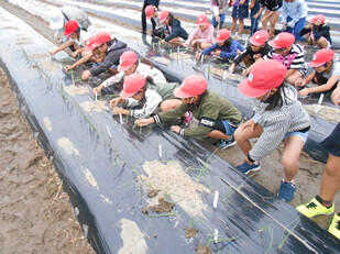 今年も地域の方の畑と苗の提供を受けて、10月21日(月)に3年生が延岡の名産品である「空飛ぶ新たまねぎ」を植えました。