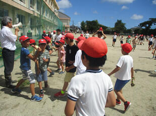 南小は、ネットが少し破けたり、栴檀の枝が少し折れたりというくらいで大きな被害はありませんでした。7日(月)は臨時休業でしたが、8日(火)には、熱中症の心配がいるくらいの天気でした。子どもたちは昼休み、元気いっぱいに運動場で遊んでいました。