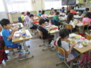 今日から、1年生の給食がスタートしました。メニューは、カレーでした。