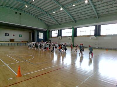 シャトルランに取り組んでいる4年生の姿がありました。子どもたちが力を振り絞って走っています。