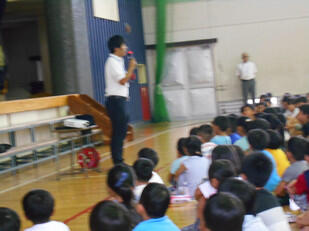 740名が体育館に集まると壮観です。みんなしっかりと友だちの発表や先生の話を聞くことができました。