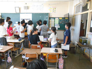 今日の6校時は、運動会の係打ち合わせがありました。5・6年生がそれぞれのかかりの先生の所に行って、細かい役割を決めたり、仕事の進め方を確認したりしていました。