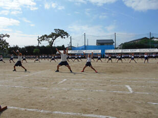 朝は、雨を降らず、リーダーの人たちが一生懸命練習をしていました。下級生の人も運動場や教室の窓から、その姿を見ていました。
