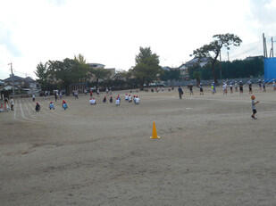 各学年では、団に分けるため走力を確認するために、徒走をしていました。1年生、2年生、5年生、6年生は4学級ですが、3年生と4年生は3学級です。この2つの学年は4つの団に分けるのはとても大変ですが、いろいろな友だちとの出会いが生まれる良い面もあります。