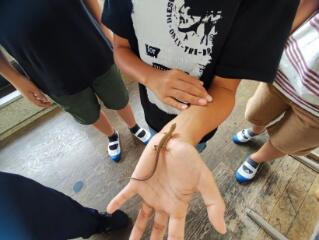 運動場でトカゲを捕まえてきて、盛り上がっている5年生に遭遇しました。