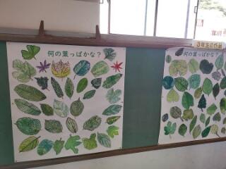 「何の葉っぱかな?」というタイトルが付いた、模造紙いっぱいに描かれた葉っぱです。