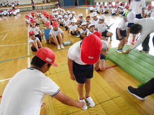 毎年、実施されているスポーツテストが実施されました。1年生や2年生は、6年生や5年生とペア組んでいろいろ支援されながら実施していました。