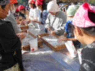 12月8日(土)の土曜授業の日に、5年生は「おもちつき」をしました。JA延岡の人々や地域の方、保護者の方の協力を得て実施しました。