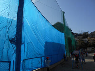 運動場南側の老朽化したブロック塀を、フェンスに換える工事をしていました。