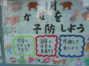 その他、生活面で「身の周りの整とんをしよう。」、保健面で「かぜを予防しよう」、給食面で「好き嫌いなく食べよう」という三つのことにも今月がんばります。