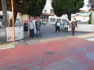 正門前を通る車の方や、自転車の高校生、歩いている地域の方も子供たちに会釈をしたり、あいさつをしてくれたりします。