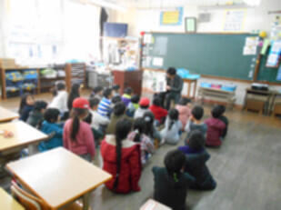 4月から1年生になる園児との交流会が2月28日(木)にありました。本校に入学する園児だけでなく、他校に入学する園児も参加してくれました。近隣のたくさんの幼稚園、保育所のご協力がありました。
