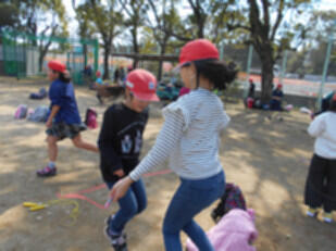 すべり台や鉄棒など一部、遊具が使用できませんでしたが、本日3月5日(火)に運動場の仕切りがなくなり、使えるようになりました。