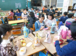 子どもたちは、元気いっぱい学校に戻ってきて、お家の方が作ってくれたお弁当をおいしそうに食べていました。