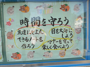 10月の目標は、『時間を守ろう』です。登校の時間、学校生活の中の時間、家庭での約束など、しっかりと守れるようにしていきます。特に、10月1日からは、帰宅する時刻が17:00となっています。