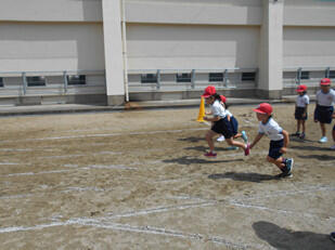 各学年では、団に分けるため走力を確認するために、徒走をしていました。1年生、2年生、5年生、6年生は4学級ですが、3年生と4年生は3学級です。この2つの学年は4つの団に分けるのはとても大変ですが、いろいろな友だちとの出会いが生まれる良い面もあります。