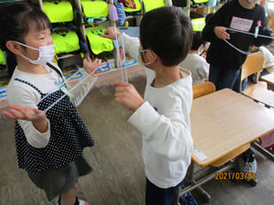 3月5日(金)お別れ遠足でした。前日の天気予報では、何とか天候が回復しそうで校外へ行けるのではと期待していましたが、あいにくに雨となり校内遠足となりました。