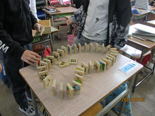 トランプやオセロなどはもちろんですが、1年生は「あやとり」をしたり、3年生は「ドミノ倒し」を工夫してしたり、雨の日の昼休みも楽しく過ごせるように自分たちで工夫できるようになりました。