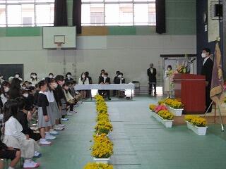 あいにくの雨模様でしたが、体育館には109名の新入生の明るく元気な声が響きました。