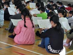 月に一度の学年集会が体育館でありました。