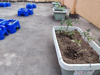 ホウセンカ、ヒマワリ、マリーゴールドの芽が出ていました。