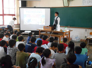 2学級ずつ2時間の授業を2コマ、1校時から4校時まで続けて授業をしてくださいました。実験を交えた本当に子どもたちにとって、楽しく、そして、為になる授業でした。