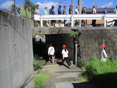 今回は地震のあとに、津波が発生し、高台へと避難する訓練を行いました。1~3年生は、学校西側のマンション駐車場へ、4~6年生は青朋高校へ避難しました。毎年、1回は訓練を行い、避難経路の確認や落ち着いて行動することの大切さを練習します。