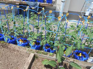 気温も徐々に高くなり始めていますが、2年生が生活科で花壇に植えている野菜たちもすくすく成長しています。