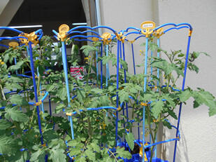 蔓が伸びてきました。支柱をしましたが、そろそろ巻き付こうとしています。