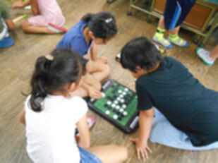 グループを作ってトランプとカルタをしている子どもが多かったです。色ぬりや粘土をしている子どももいました。オセロをしている子どもも多かったです。鍵盤ハーモニカを楽しそうに吹いている学級もありました。