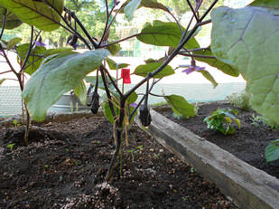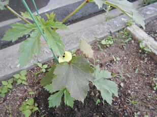 ピーマン、オクラはかわいい花が咲き始めました。ナスは花だけでなく、実も少しずつ大きくなっています。