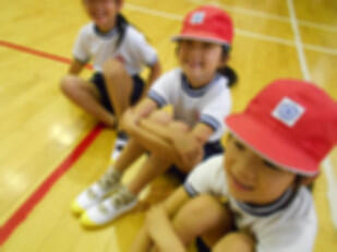 体育館で、2年生の代表が進行をしながら、先生の話を聞いた後に、「だいこんぬき」というゲームをしていました。