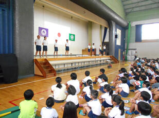 リーダーが今度の運動会にかけるそれぞれの思いを伝え、団結力を高めました。それぞれの団付きとの先生方との対面式もありました。