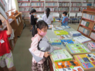 今日は1年生の選書会です。本が大好きな1年生、みんな思い思いにいろいろな本を見ながら、気に入った本を選んでいました。