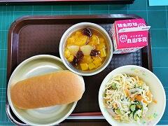 一ヶ岡小の給食室で作られて、南小に配送されています。とてもおいしい給食です。