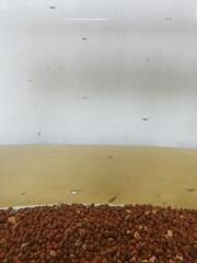 理科室前の水槽にメダカの赤ちゃんがばかりが入っている水槽があります。