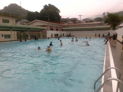 服を着た状態で水に落ちた状況を体験してみて、泳ぎにくさであったり、落ち着いて行動すれば命が助かることを実感したりするための学習です。本校では、毎年、2、4、6年生が体験しています。