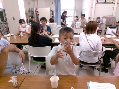 大きなシャボン玉作りにも挑戦していましたよ。風向きを考えたり、つける液の量を調整したりいろいろな工夫をしながら、さまざまな気付きがあったようです。