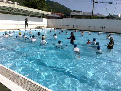 6年生の水泳指導に九州保健福祉大学の学生のみなさんが、指導に当たってくださっていました。
