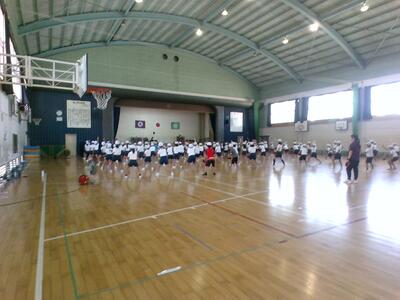 体育館をのぞいてみると、4年生がエイサーの練習をしていました。