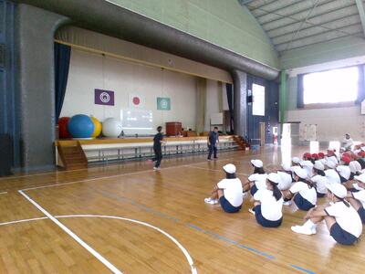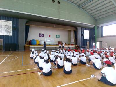 九州保健福祉大学の先生が、6年生児童へ向けてバトンパスの仕方について授業をしてくださいました。
