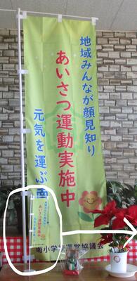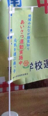 南小学校運営協議会にて”あいさつ運動実施中”ののぼり旗をつくりました。