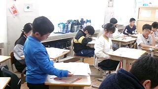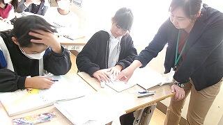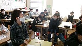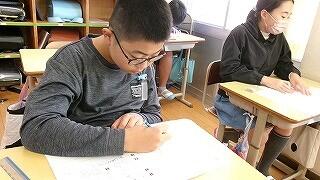 3年生は、今週行われる学力テストに向けて、練習問題を解いて答え合わせをしていました。