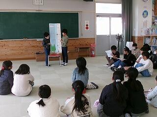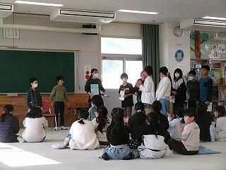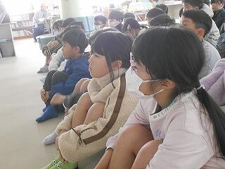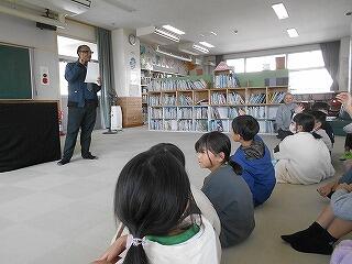11月27日(木)は、中学年対象のお話会の日でした。図書ボランティア「緑の風」の皆様が5名お越しくださり、1時間たっぷりお話の世界に誘ってくださいました。絵本にスケッチブックでの手作りの絵本、紙芝居と次々にご用意くださり、子どもたちもどんどん引き込まれていきました。ALTのクレイトン先生も、今日はボランティアの皆様に仲間入り!英語でクイズを出してくださるなど、楽しく盛り上がりました。図書ボランティアの皆様、お忙しい中、たくさんのご準備をしていただき、素敵なひとときを誠にありがとうございました。3学期の高学年のお話会も楽しみです!