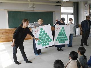 終わりに、ボランティアの皆様から手作りのクリスマスツリーをプレゼントにいただきました!中からお楽しみの飾りが出てくる仕掛けのようです。わくわくするプレゼントをありがとうございました!