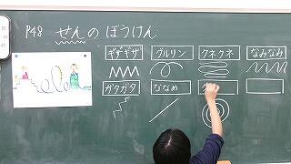 12月1日(月)、1年生が図工「せんのぼうけん」の活動の導入を楽しんでいました。いろいろな種類の線を考えて、アイデアをたくさん出しています。