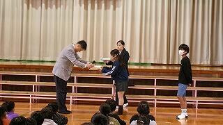 12月2日(火)、12月の全校朝会を行いました。まず、校長先生のお話です。「幸動」の意味を振り返るとともに、自分の行いは必ず後で自分に返ってくることについて、動画を視聴しながら確かめました。続いて、栄養教諭の片桐先生から、来週の給食感謝集会を前に、給食への感謝についての意義や内容について詳しくお話がありました。最後に、各種の表彰式です。たくさんの児童が表彰されました。おめでとうございます!