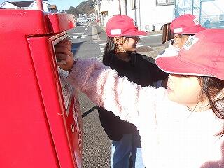 12月22日(月)に、1年生が学校の近くのポストにお手紙を入れに行ってきました。お手紙は、入学前にお世話になった幼稚園や保育園の先生方に向けて書いているようです。先生方のもとに届いて読んでいただけるのがとっても楽しみな1年生です!