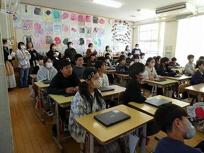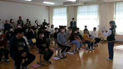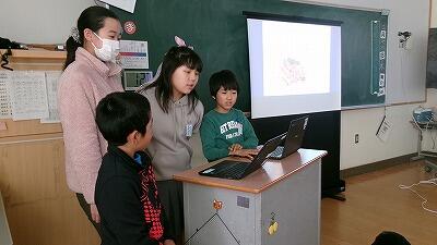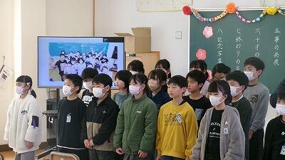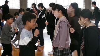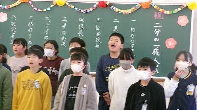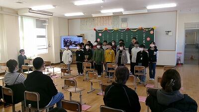 2月27日(金)、3年教室では6年生へ贈る言葉の練習が行われていました。卒業式に出席できない学年が、動画でお祝いのプレゼントをする企画の真っ最中です。先生と台詞を決めたり、振り付けや移動を考えたりしながら練習しています。最後はダンスで締めくくり、みんなの集中力でたちまち贈り物が完成していました。たのしさいっぱいの贈り物、きっと卒業生が喜んでくれることでしょう。