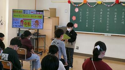 2月19日(木)は5~6年生の参観日でした。5年生は総合的な学習の時間、お米づくりの体験学習を通して学んだことを発表しました。6年生は、国語「今、私は ぼくは」と題して、卒業を前に、将来の夢や大事にしている言葉など自分の考えをスピーチしました。保護者の皆様、子どもたちの成長を実感する発表会を温かくご参観いただき、有り難うございました。